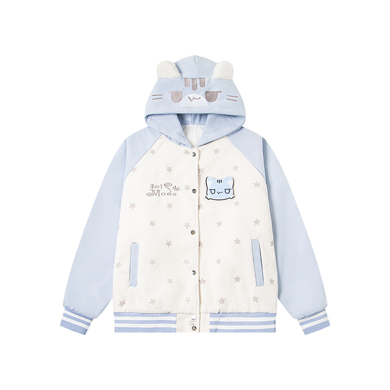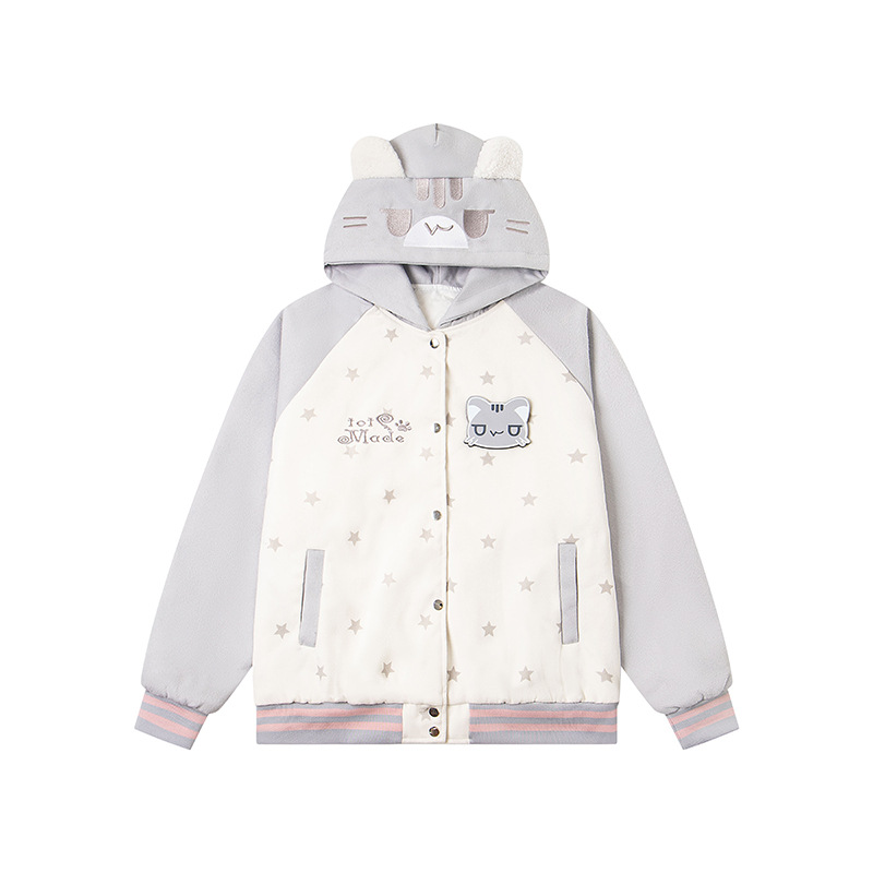 Velcro Cat Hoodie Quilted Trendy Baseball Jacket