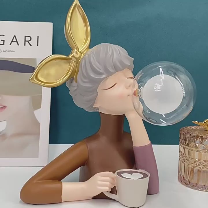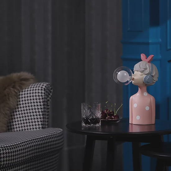 Illuminate any space with the Blowing Bubble Gum Girl Lamp, designed to add a playful yet stylish touch to girls' bedrooms or decorative displays. This lamp features a convenient cable plug-in switch located at the back, ensuring easy operation and seamless integration into any room. Its charming design makes it an ideal gift choice for birthdays or special occasions. Crafted to combine functionality with aesthetic appeal, this lamp enhances ambiance while providing reliable lighting.